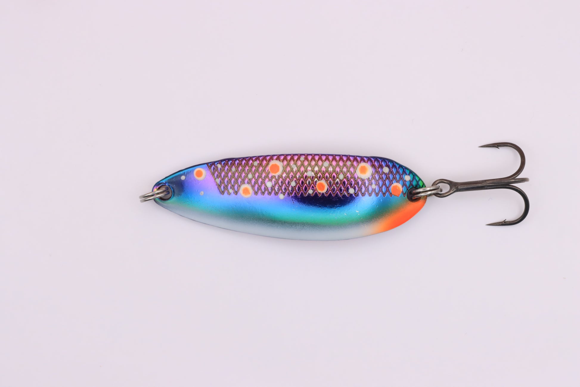 Oscilante hand made pentru pescuitul de pastrav, clean sau biban. Produse cu materiale de calitate și pattern unic, pentru a atrage prin realism. Testată cu succes pe lacurile sălbatice din România, această nălucă va fi cea mai buna alegere pentru prinderea pastravului. Poate cea mai echilibrata si ușor de pescuit, aceasta oscilanta poate fi folosită si la trena sau spinning de pe mal.