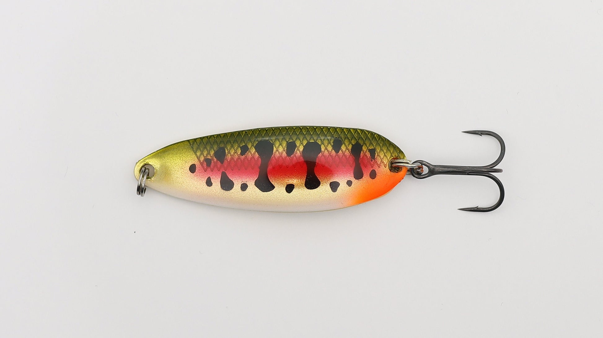 Oscilante hand made pentru pescuitul de pastrav, clean, salau sau biban. Produse cu materiale de calitate și pattern unic, pentru a atrage prin realism. Testată cu succes pe lacurile sălbatice din România, această nălucă va fi cea mai buna alegere pentru prinderea pastravului. Poate cea mai echilibrata si ușor de pescuit, aceasta oscilanta poate fi folosită si la trena, spinning de pe mal sau barca.