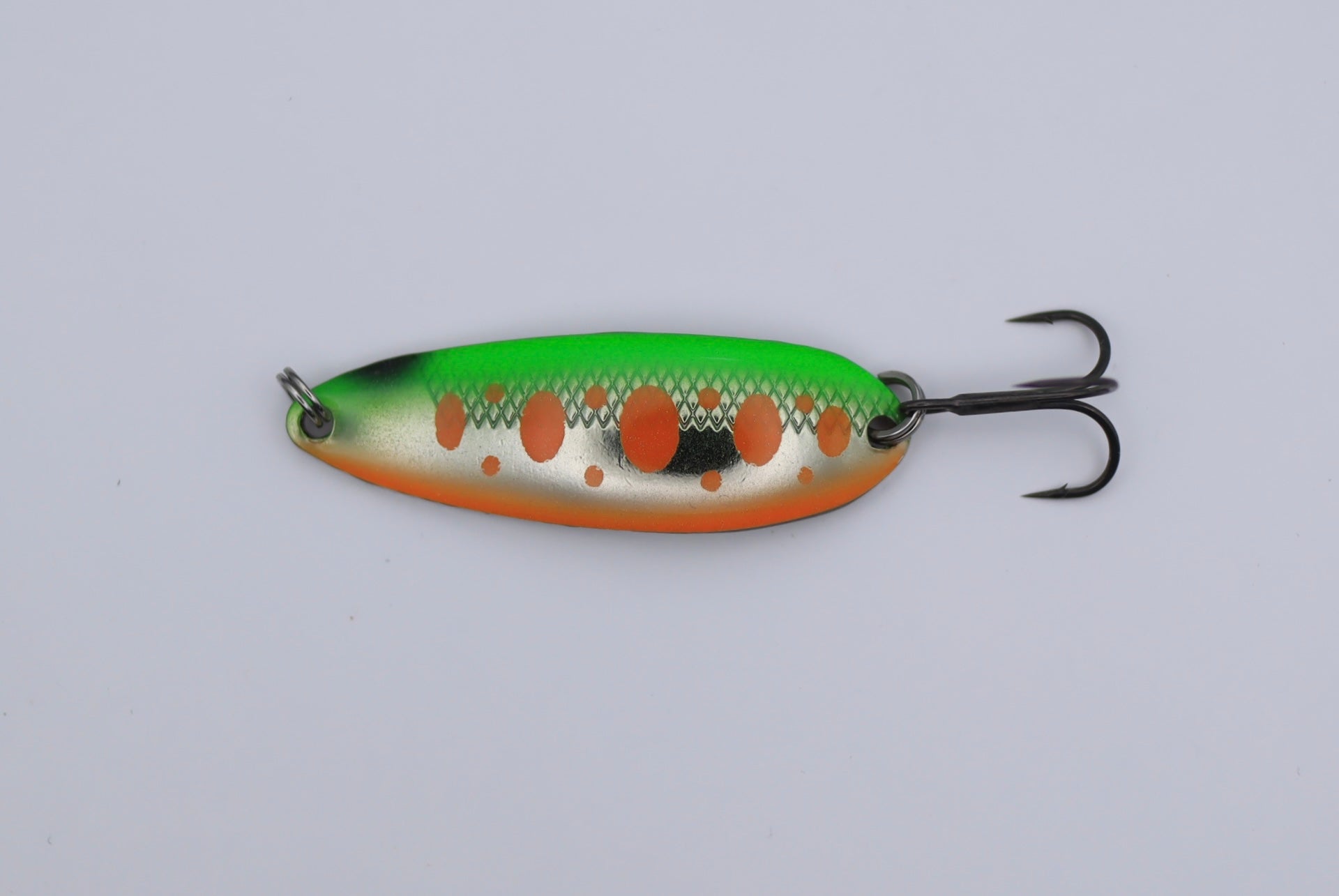 Oscilante hand made pentru pescuitul de pastrav, clean sau biban. Realizată la sugestia unui pescar de top al cărui nume in poarta si patternul. Produse cu materiale de calitate și pattern unic, pentru a atrage prin realism. Testată cu succes pe lacurile sălbatice din România, această nălucă va fi cea mai buna alegere pentru prinderea pastravului. Poate cea mai echilibrata si ușor de pescuit, aceasta oscilanta poate fi folosită si la trena, spinning de pe mal sau barca.