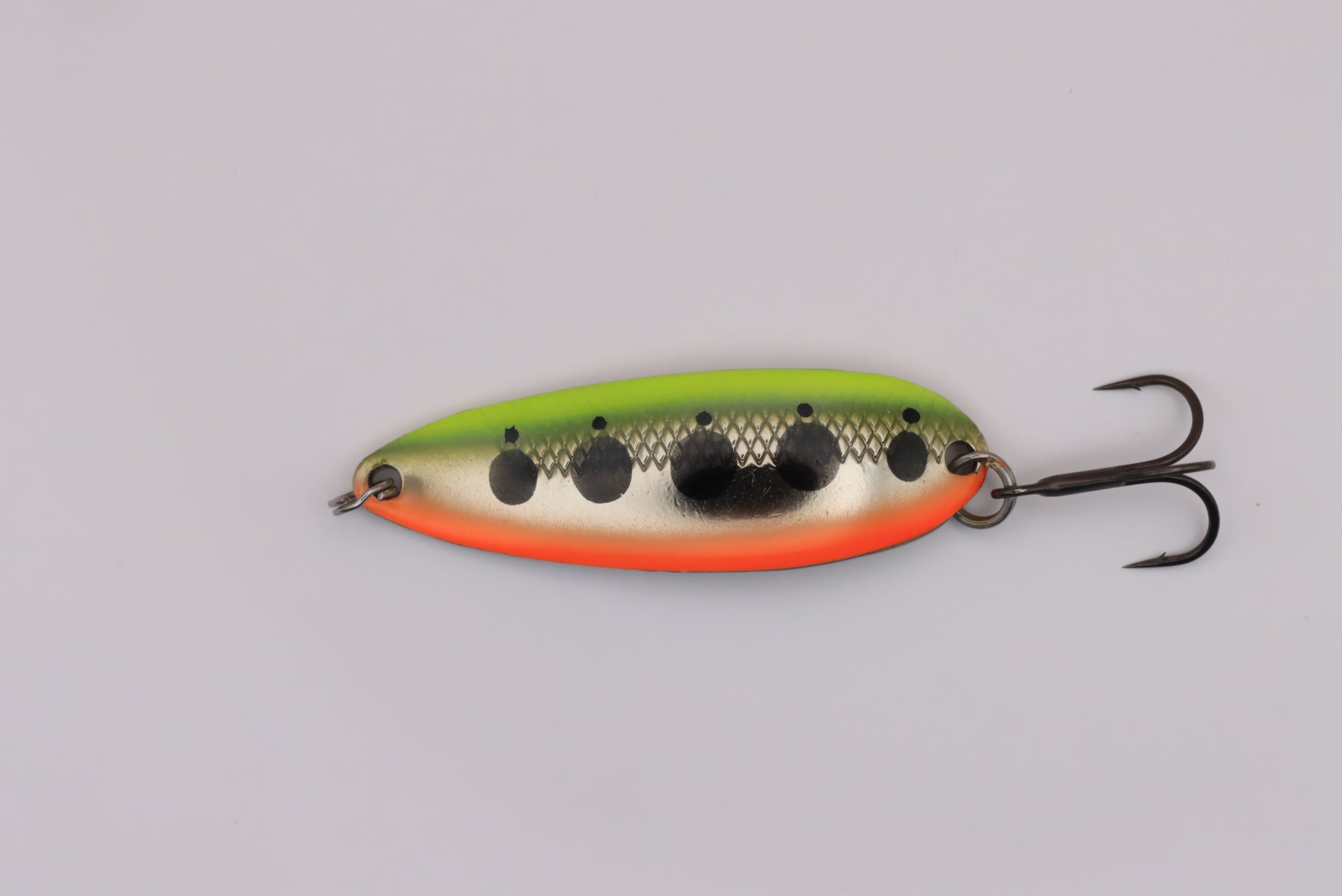 Oscilante hand made pentru pescuitul de pastrav, clean sau biban. Produse cu materiale de calitate și pattern unic, pentru a atrage prin realism. Testată cu succes pe lacurile sălbatice din România, această nălucă va fi cea mai buna alegere pentru prinderea pastravului. Poate cea mai echilibrata si ușor de pescuit, aceasta oscilanta poate fi folosită si la trena sau spinning de pe mal.