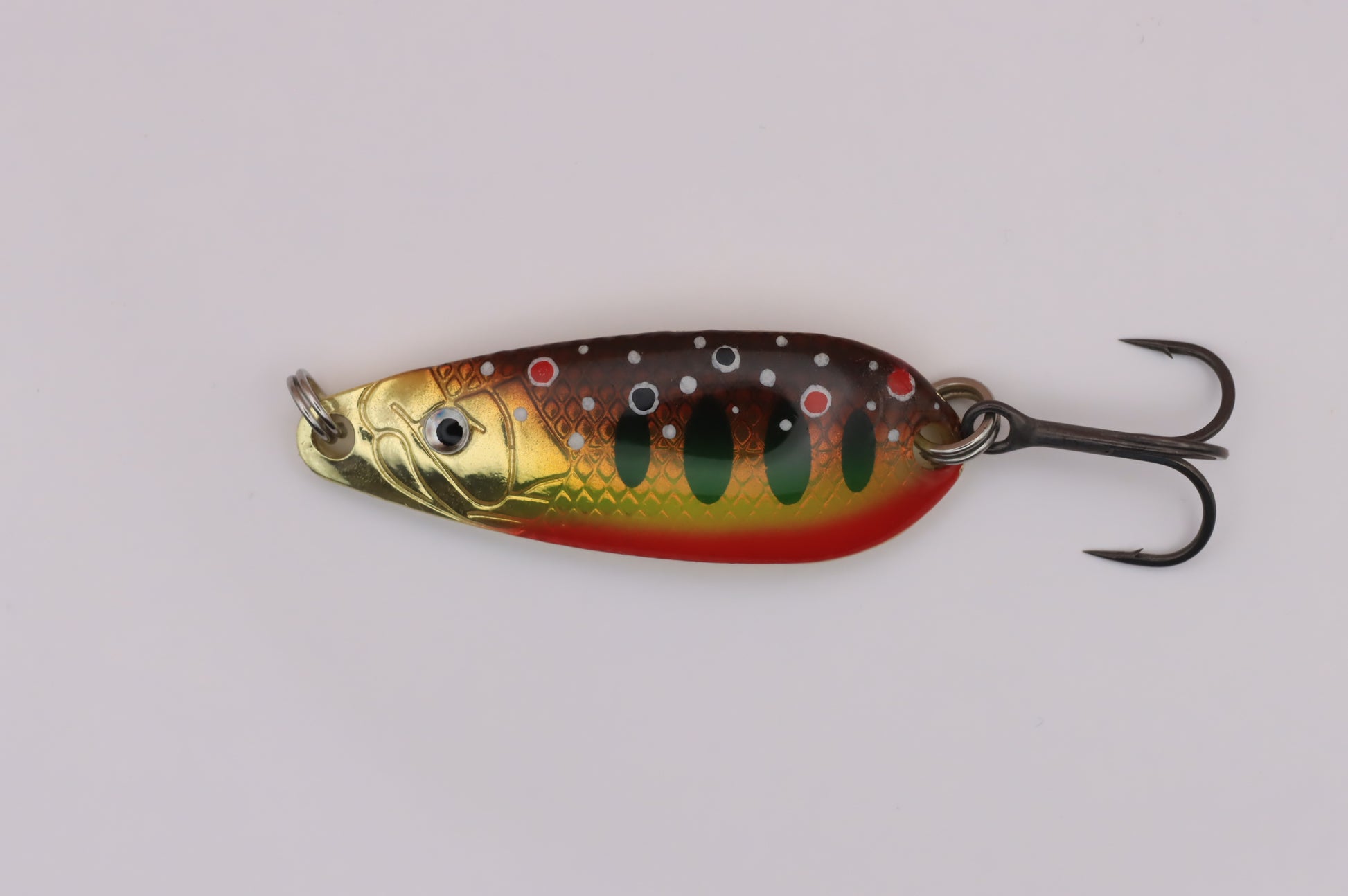 Oscilante hand made pentru pescuitul de pastrav, clean sau biban. Produse cu materiale de calitate și pattern unic, pentru a atrage prin realism. Testată cu succes în apă, această nălucă va fi cea mai buna alegere pentru prinderea pastravului in ape cu adâncimi mari si se pescuiesc mai agresiv prin pompaje cu scurte pauze.
